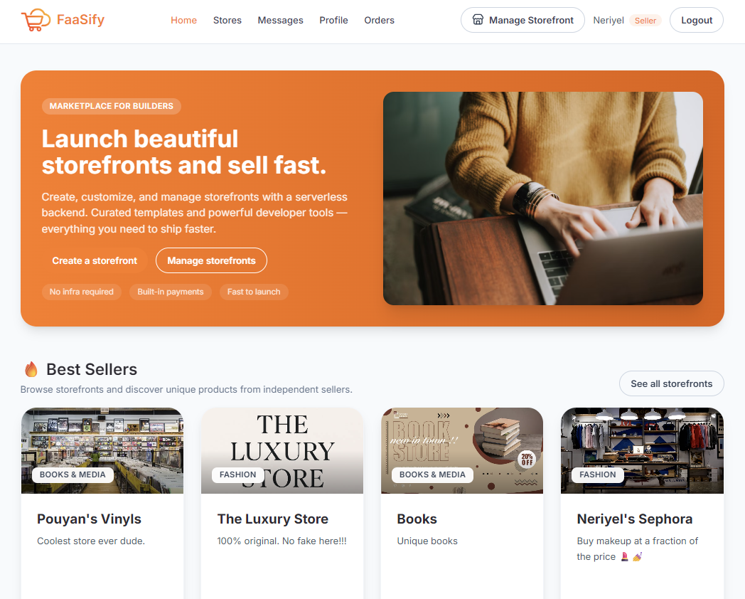 A serverless e-commerce storefront platform built on AWS cloud architecture. This collaborative project with an 11-person team features a React frontend, serverless Lambda backend with DynamoDB, and real-time chat functionality. I focused on developing the WebSocket server using TypeScript and Bun, implementing real-time messaging, typing indicators, read receipts, and presence tracking.